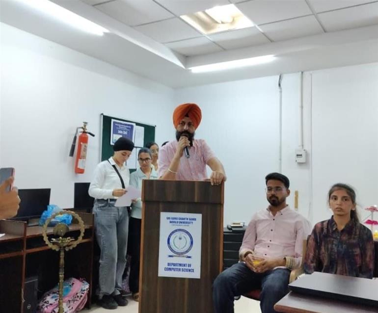 The Department of Computer Science, Sri Guru Granth Sahib World University, Fatehgarh Sahib, through its Technology Club, celebrated Engineer’s Day by paying tribute to Bharat Ratna Sir M. Visvesvaraya, one of India’s greatest engineers.The Technology Club organised an expert talk on “Engineering Excellence in AI and Emerging Tech”, aimed at inspiring students. Dr. Kamaljit Kaur, Club Coordinator, extended a warm welcome to the participants and introduced the vision and objectives of the Technology Club.