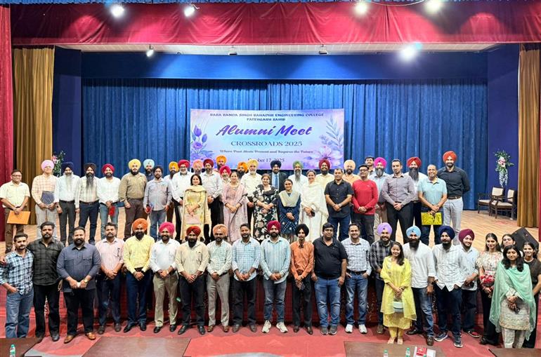 ਬਾਬਾ ਬੰਦਾ ਸਿੰਘ ਬਹਾਦਰ ਇੰਜੀਨੀਅਰਿੰਗ ਕਾਲਜ ਵੱਲੋਂ ਐਲੂਮਨੀ ਮੀਟ ਦਾ ਆਯੋਜਨ ਕੀਤਾ ਗਿਆ, ਜਿਸ ਵਿੱਚ ਦੇਸ਼-ਵਿਦੇਸ਼ ਤੋਂ 250 ਤੋਂ ਵੱਧ ਪੁਰਾਣੇ ਵਿਦਿਆਰਥੀਆਂ ਨੇ ਉਤਸ਼ਾਹ ਨਾਲ ਹਾਜ਼ਰੀ ਲਗਾਈ।ਸਮਾਗਮ ਦੀ ਸ਼ੁਰੂਆਤ ਸ਼ਬਦ ਗਾਇਨ ਨਾਲ ਕੀਤੀ ਗਈ। ਡਾ. ਮਨਪ੍ਰੀਤ ਕੌਰ ਨੇ ਸਭ ਮਹਿਮਾਨਾਂ, ਐਲੂਮਨੀ ਅਤੇ ਹਾਜ਼ਰੀਨ ਦਾ ਸਵਾਗਤ ਕੀਤਾ।ਪ੍ਰਿੰਸੀਪਲ ਡਾ. ਲਖਵੀਰ ਸਿੰਘ ਨੇ ਆਪਣੇ ਸੰਬੋਧਨ ਵਿੱਚ ਐਲੂਮਨੀ ਦਾ ਤਹਿ ਦਿਲੋਂ ਸਵਾਗਤ ਕੀਤਾ ਅਤੇ ਕਾਲਜ ਦੀਆਂ ਅਕਾਦਮਿਕ, ਰਿਸਰਚ ਅਤੇ ਸਮਾਜਿਕ ਖੇਤਰ ਵਿੱਚ ਕੀਤੀਆਂ ਸ਼ਾਨਦਾਰ ਪ੍ਰਾਪਤੀਆਂ ਬਾਰੇ ਜਾਣਕਾਰੀ ਸਾਂਝੀ ਕੀਤੀ।
