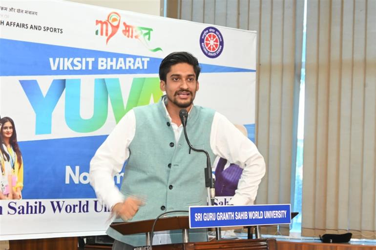 ਸ਼੍ਰੀ ਗੁਰੂ ਗ੍ਰੰਥ ਸਾਹਿਬ ਵਰਲਡ ਯੂਨੀਵਰਸਿਟੀ, ਫਤਿਹਗੜ੍ਹ ਸਾਹਿਬ ਵੱਲੋਂ ਨੈਸ਼ਨਲ ਸਰਵਿਸ ਸਕੀਮ (ਐਨ.ਐਸ.ਐਸ.) ਦੇ ਤਹਿਤ ਇੱਕ ਯੁਵਾ ਕਨੇਕਟ ਪ੍ਰੋਗ੍ਰਾਮ ਕਰਵਾਇਆ ਗਿਆ।ਇਸ ਮੌਕੇ ਯੁਵਾ ਆਇਕਾਨ ਮਨਮੀਤ ਸੋਹਲ ਨੇ ਵਿਦਿਆਰਥੀਆਂ ਨੂੰ ਪ੍ਰੇਰਣਾਦਾਇਕ ਸੰਬੋਧਨ ਕਰਦਿਆਂ ਨੌਜਵਾਨਾਂ ਨੂੰ ਦੇਸ਼ ਦੀ ਤਰੱਕੀ ਵਿੱਚ ਸਰਗਰਮ ਯੋਗਦਾਨ ਦੇਣ ਲਈ ਉਤਸ਼ਾਹਿਤ ਕੀਤਾ।ਡਾ. ਹਰਨੀਤ ਬਿਲਿੰਗ, ਪ੍ਰੋਗ੍ਰਾਮ ਕੋਆਰਡੀਨੇਟਰ, ਐਨ.ਐਸ.ਐਸ., ਨੇ ਯੁਵਾ ਸੰਸਦ ਅਤੇ ਯੁਵਾ ਕਨੇਕਟ ਮੁਹਿੰਮ ਦੀ ਦ੍ਰਿਸ਼ਟੀ ਅਤੇ ਉਦੇਸ਼ਾਂ ਬਾਰੇ ਵਿਸਥਾਰ ਨਾਲ ਜਾਣਕਾਰੀ ਸਾਂਝੀ ਕੀਤੀ।ਇਸ ਮੌਕੇ ਪ੍ਰੋ. (ਡਾ.) ਪਰਿਤ ਪਾਲ ਸਿੰਘ, ਵਾਈਸ ਚਾਂਸਲਰ, ਅਤੇ ਪ੍ਰੋ. (ਡਾ.) ਸੁਖਵਿੰਦਰ ਸਿੰਘ ਬਿਲਿੰਗ, ਡੀਨ ਅਕਾਦਮਿਕ ਮਾਮਲੇ, ਨੇ ਐਨ.ਐਸ.ਐਸ. ਟੀਮ ਅਤੇ ਸਟਾਫ ਦੀ ਪ੍ਰਸ਼ੰਸਾ ਕਰਦਿਆਂ ਕਿਹਾ ਕਿ ਇਸ ਤਰ੍ਹਾਂ ਦੇ ਪ੍ਰੋਗ੍ਰਾਮ ਨੌਜਵਾਨਾਂ ਵਿੱਚ ਨੇਤ੍ਰਿਤਵ ਗੁਣਾਂ, ਨਾਗਰਿਕ ਜ਼ਿੰਮੇਵਾਰੀ ਅਤੇ ਰਾਸ਼ਟਰ-ਨਿਰਮਾਣ ਦੀ ਭਾਵਨਾ ਨੂੰ ਮਜ਼ਬੂਤ ਕਰਦੇ ਹਨ, ਜੋ ਕਿ ਵਿਕਸਿਤ ਭਾਰਤ@2047 ਦੇ ਸਪਨੇ ਨੂੰ ਸਾਕਾਰ ਕਰਨ ਵੱਲ ਇੱਕ ਮਹੱਤਵਪੂਰਨ ਕਦਮ ਹੈ।